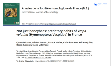 Coleoptera-mecoptera-Neuroptera-Fannia-Dryomyza-Dermaptera-Dictyoptera 19 out of 159 species on the Asian hornet menu. A nest devours 11 kg of insects per year. Favourite food: Bees Illustrative photos